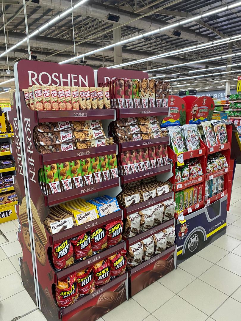Roshen takes branding visibility to the next level with eye-catching booths placed in supermarkets nationwide.
