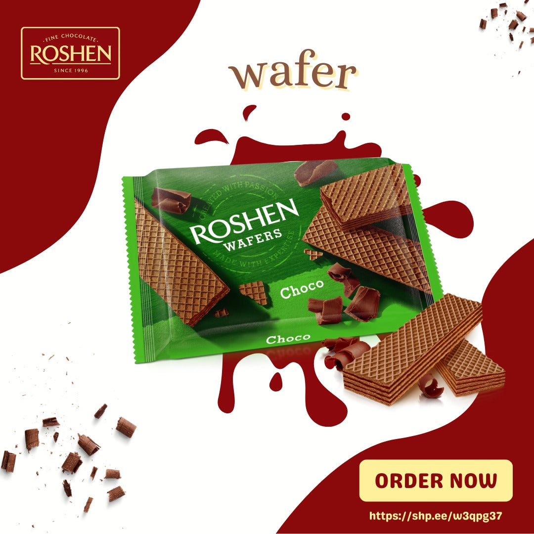 Discover the exquisite blend of taste and texture in Roshen Wafer with Choco Flavoured Cream. This package is a journey of indulgence, offering delicate wafer layers filled with a luxurious choco-flavoured cream that promises to delight your senses and elevate your snacking experience.